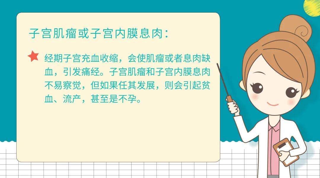 是由生殖器官的器质性病变引起的,此时,“痛经”即是较为强烈的身体警报,因为导致继发性痛经的原因往往比“疼痛”更可怕。
