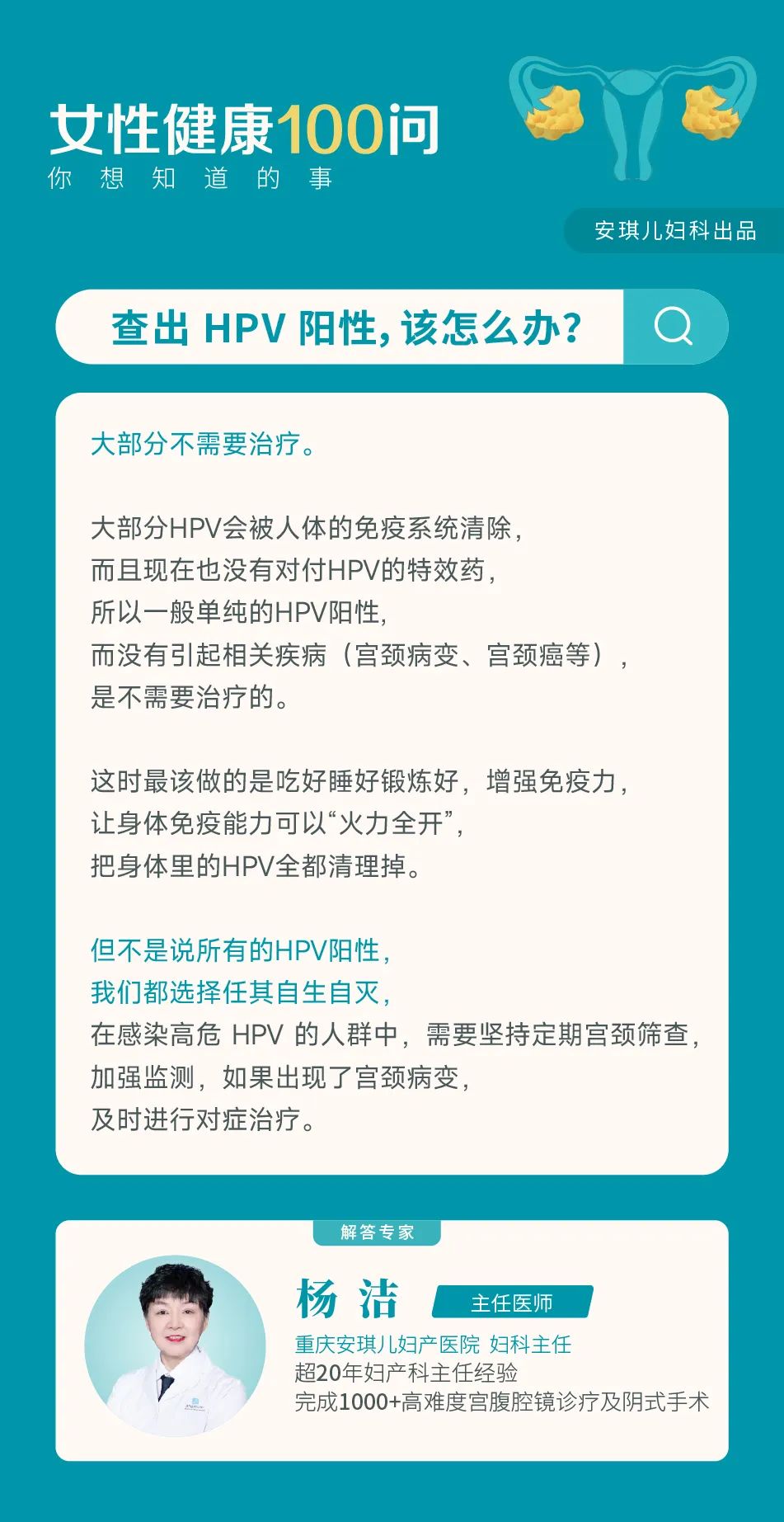 主页 > 走进Angel > 医院新闻 > 女性健康100问丨查出HPV阳性,该怎么办? 2022-09-26 09:06 198 上一篇:母婴护理膳食营养指南 | 母婴护理膳食为什么要清淡? 下一篇:更年期为什么要补充雌激素? 相关阅读/reading 女性健康100问丨剖腹产伤口什么时候能愈 女性健康100问丨“安环”避孕能一劳永逸 女性健康100问丨产后子宫恢复要多长时间 女性健康100问丨更年期补充激素会发胖吗 女性健康100问丨孕产期如何预防盆底功能 相关科室/The relevant departments 产科 月子 妇科 新生儿 儿保 生殖医学