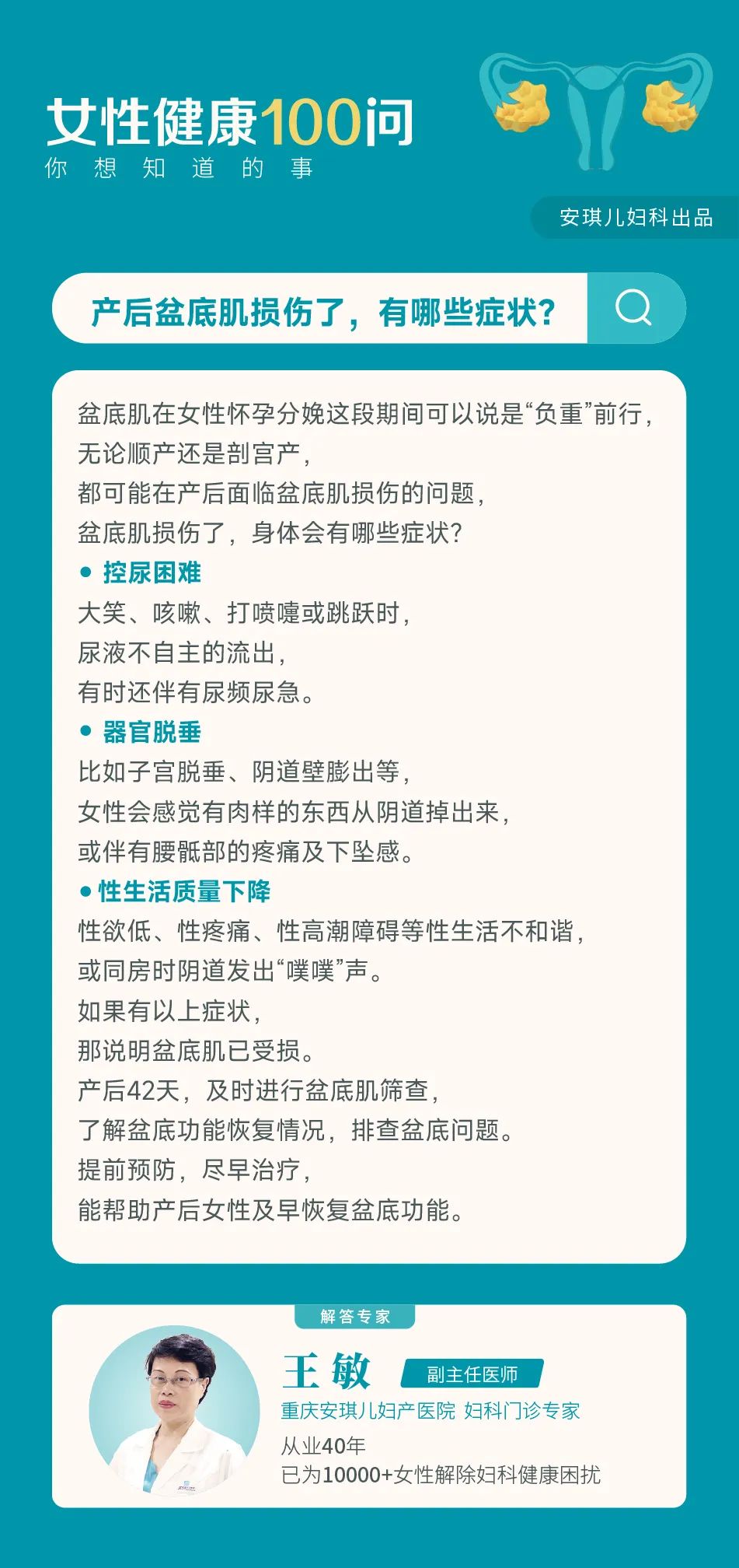 主页 > 走进Angel > 医院新闻 > 产后盆底肌损伤了,有哪些症状? 2023-02-23 09:05 254 上一篇:怀孕后应该多久到医院检查? 下一篇:月经初潮到来,女孩们应该知道这些事! 相关阅读/reading 产后第一次来月经需要注意什么? 想顺产,第一步这样做 产后子宫恢复要多长时间? 产后子宫脱垂1度后期会变好吗 疫情来势汹汹 宝妈的产后42天复查如何实 相关科室/The relevant departments 产科 月子 妇科 新生儿 儿保 生殖医学